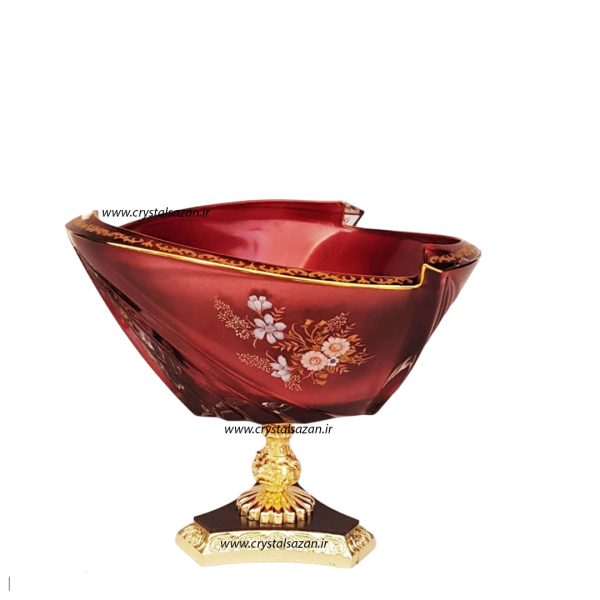 دیس شیرینی خوری کریستال سازان مدل پیزا طرح رومنس زرشکی کد K1253