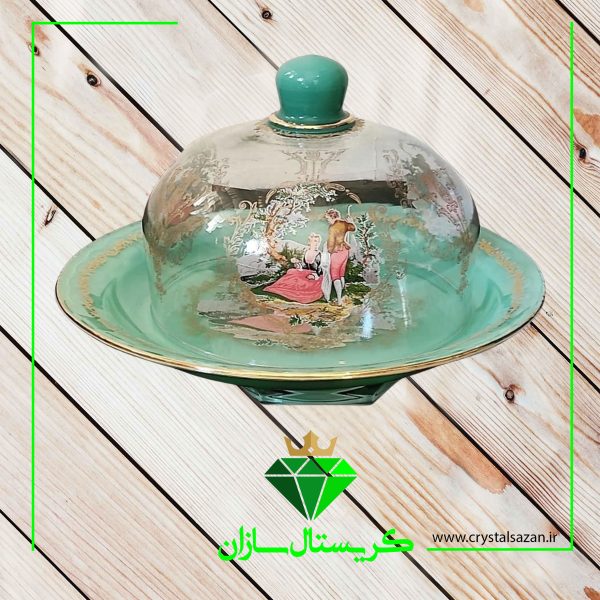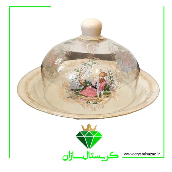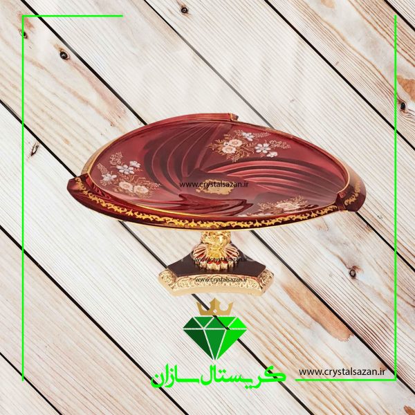 دیس شیرینی خوری کریستال سازان مدل پیزا طرح رومنس زرشکی کد K1253