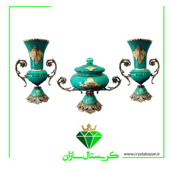 سه تیکه گلدان و میوه خوری پایه دار کریستال سازان مدل هوگو کد CS1022