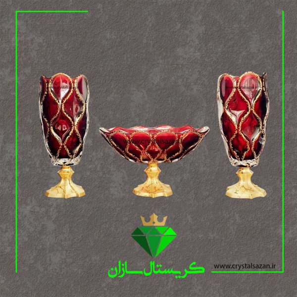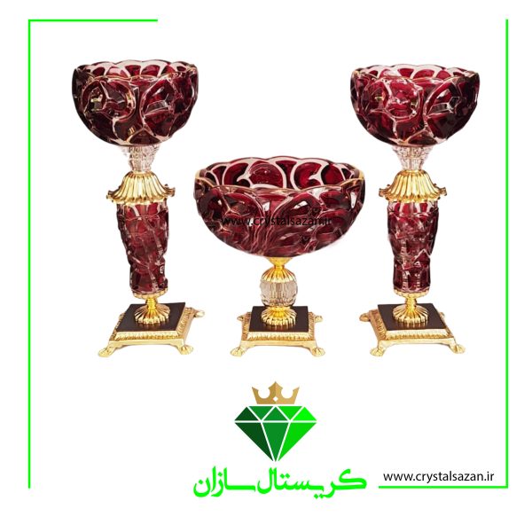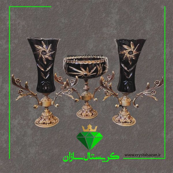 سه تیکه شمعدان و کشکول دو پوست مدل تابان کریستال سازان مشکی کد CS1240