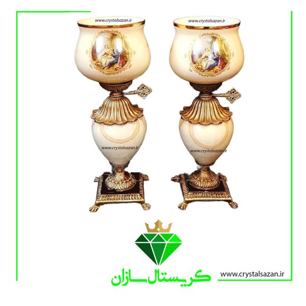 چراغ نفتدان لب چین مدل رومنس شیری کریستال سازان کد N1255