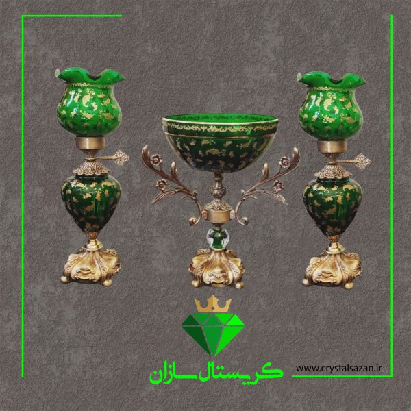 سه تیکه شمعدان و میوه خوری مدل برلیان کریستال سازان صورتی رنگ کد CS1246
