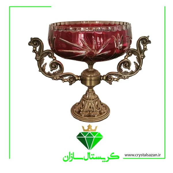 - میوه خوری کریستال پایه دار دو پوست مدل تابان کریستال سازان قرمز کد M1238